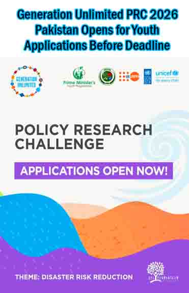 Generation Unlimited PRC 2026 Pakistan is now officially open for applications, offering a powerful platform for young people to shape the country’s future through innovative policy research and solutions focused on disaster risk reduction.