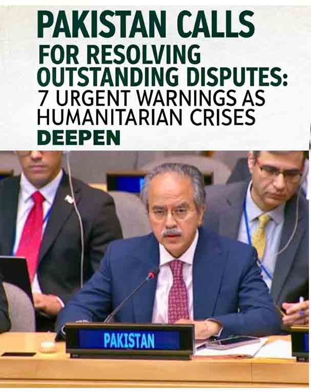 Pakistan calls for resolving outstanding disputes at the United Nations, warning that unresolved conflicts, climate shocks, and funding gaps are fueling devastating humanitarian crises worldwide.
