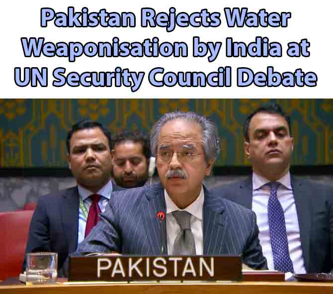 During the debate at the United Nations Security Council, Pakistan firmly rejected the idea of weaponising natural resources such as water.
