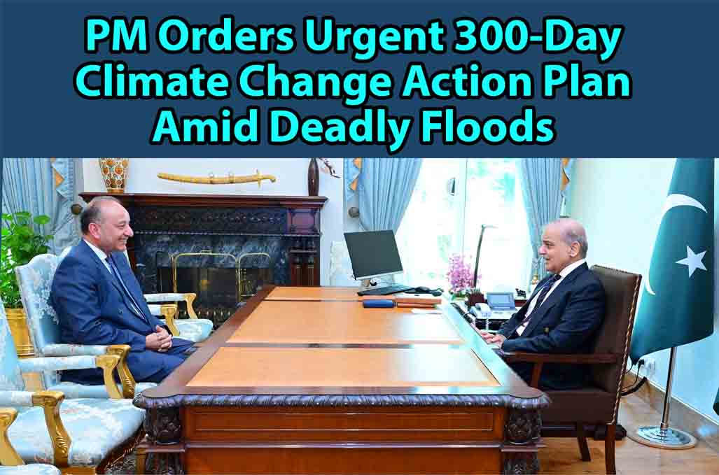 PM Shehbaz Sharif has ordered a 300-day climate change action plan as Pakistan battles floods, glacial melt, and extreme weather. NDMA confirms over 2.4 million relocated in Punjab.