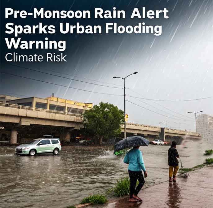 Pakistan issues a pre-monsoon rain alert warning of urban flooding and infrastructure damage. Punjab braces for 25% above-normal rainfall as climate risks intensify.