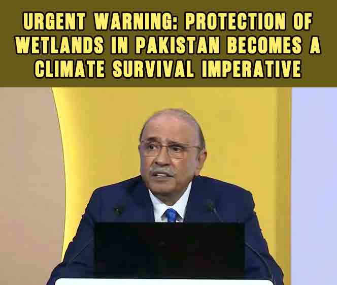 Protection of wetlands in Pakistan took center stage as President Asif Ali Zardari called on citizens, youth, local communities, and policymakers to safeguard these ecosystems, describing them as vital cultural, ecological, and climate assets.