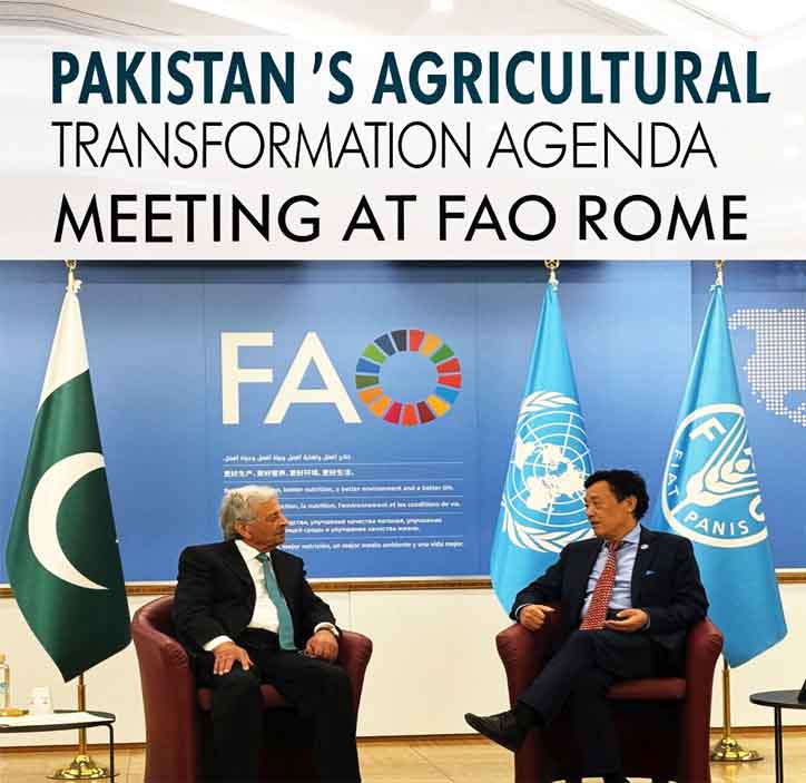 Pakistan’s Agricultural Transformation Agenda took center stage at the 44th Session of the Food and Agriculture Organization (FAO) Conference in Rome, where Federal Minister for National Food Security and Research, Mr. Rana Tanveer Hussain, held a high-level dialogue with FAO Director-General Mr. Qu Dongyu.