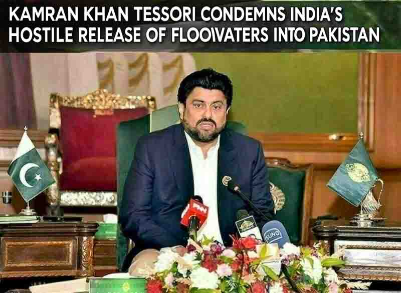 Sindh Governor Kamran Tessori condemned India’s release of floodwaters into Pakistan as “water terrorism,” urging the United Nations to take notice of India’s inhuman actions endangering millions.